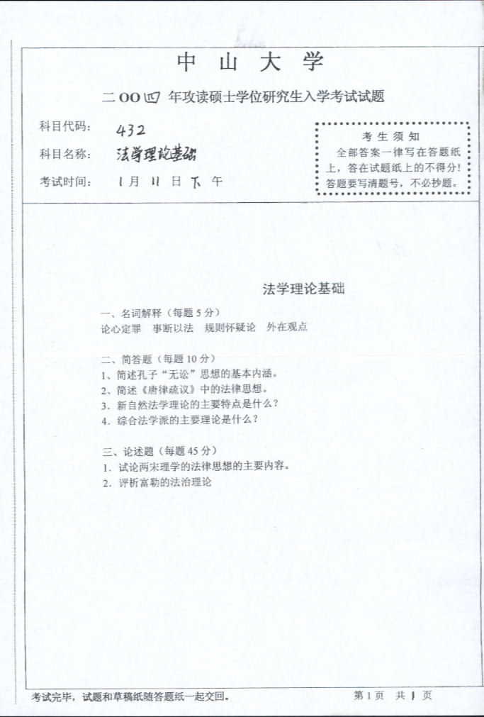 中山大学2004年半岛在线注册真题-法理学
