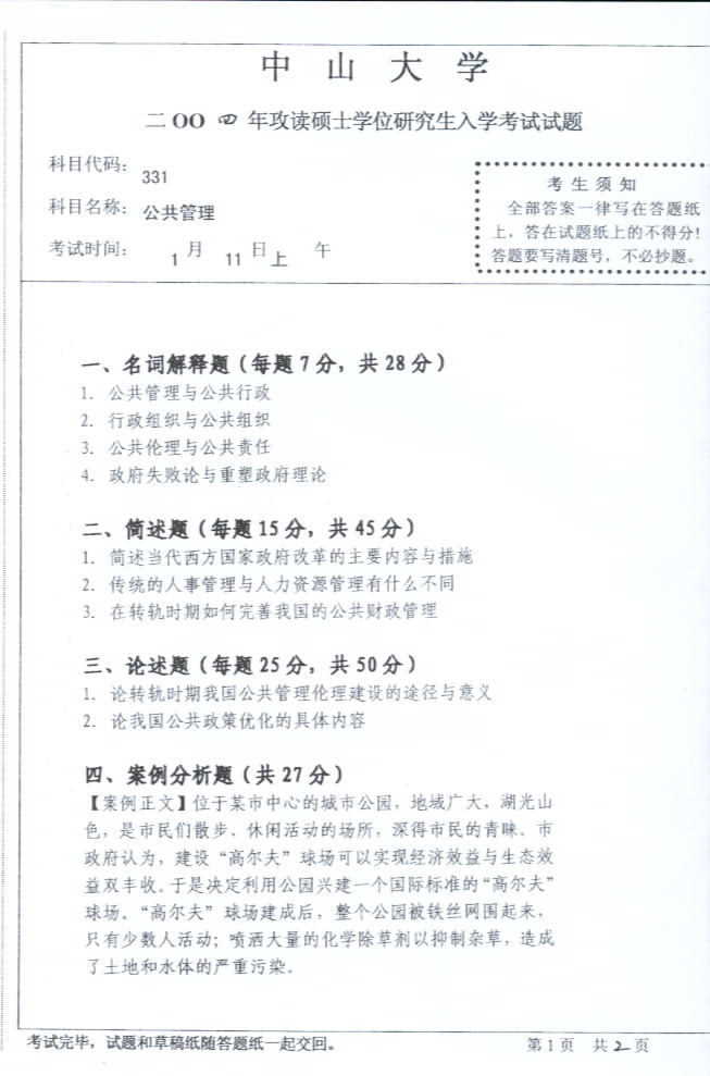 中山大学2004年半岛在线注册真题-公共管理
