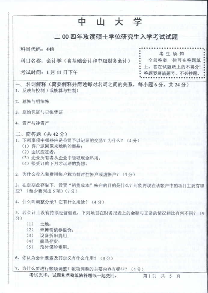 相关话题/会计学 半岛在线注册真题 基础 中山大学 会计