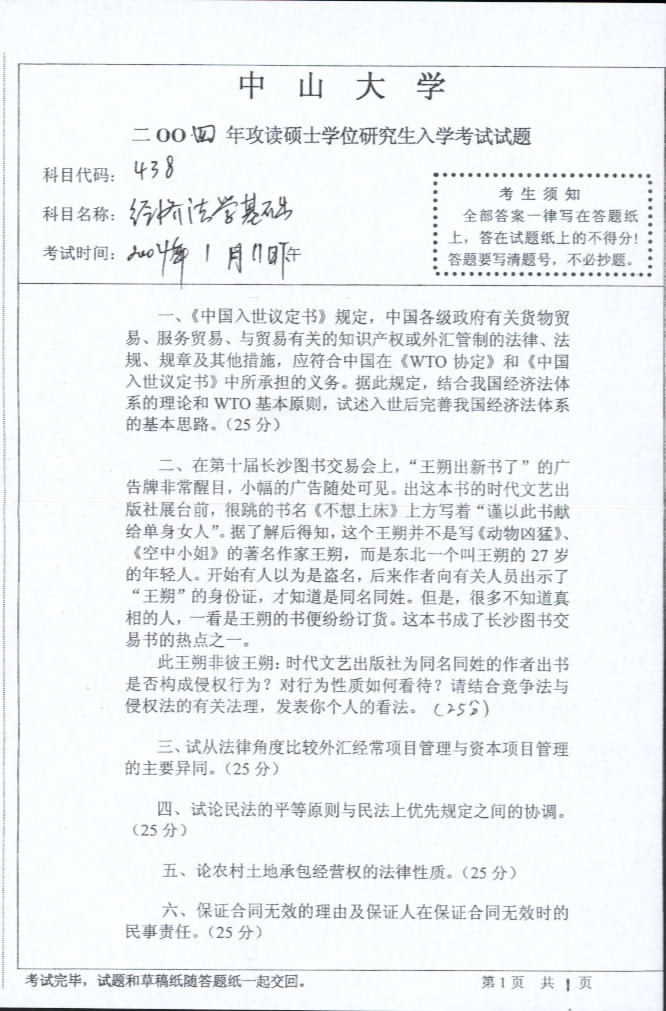 相关话题/半岛在线注册真题 中山大学 基础 经济法学