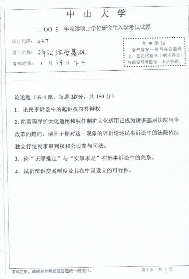 中山大学2003年半岛在线注册真题-诉讼法学基础