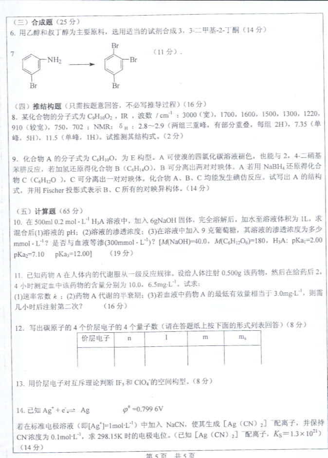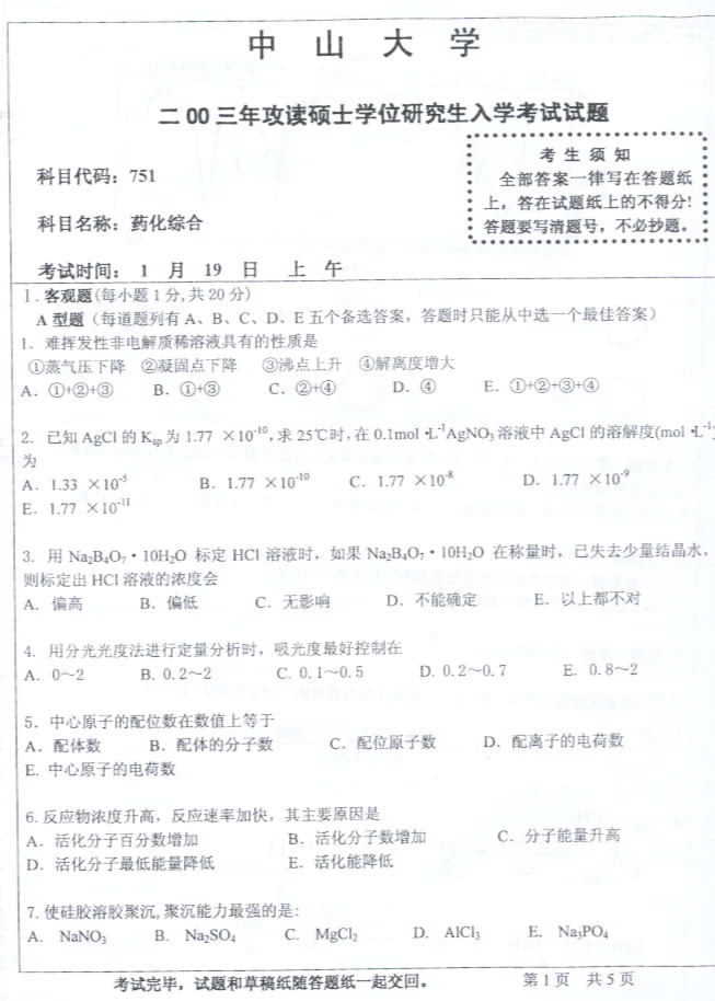 中山大学2003年半岛在线注册真题-药化综合