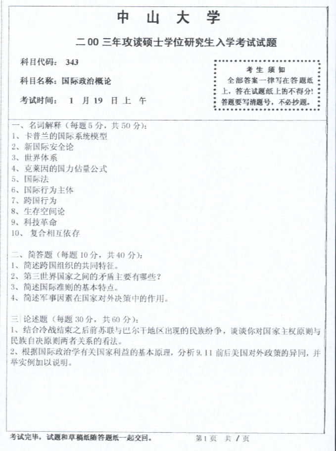 中山大学2003年半岛在线注册真题-国际政治概论