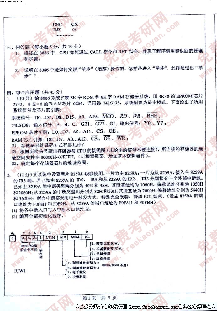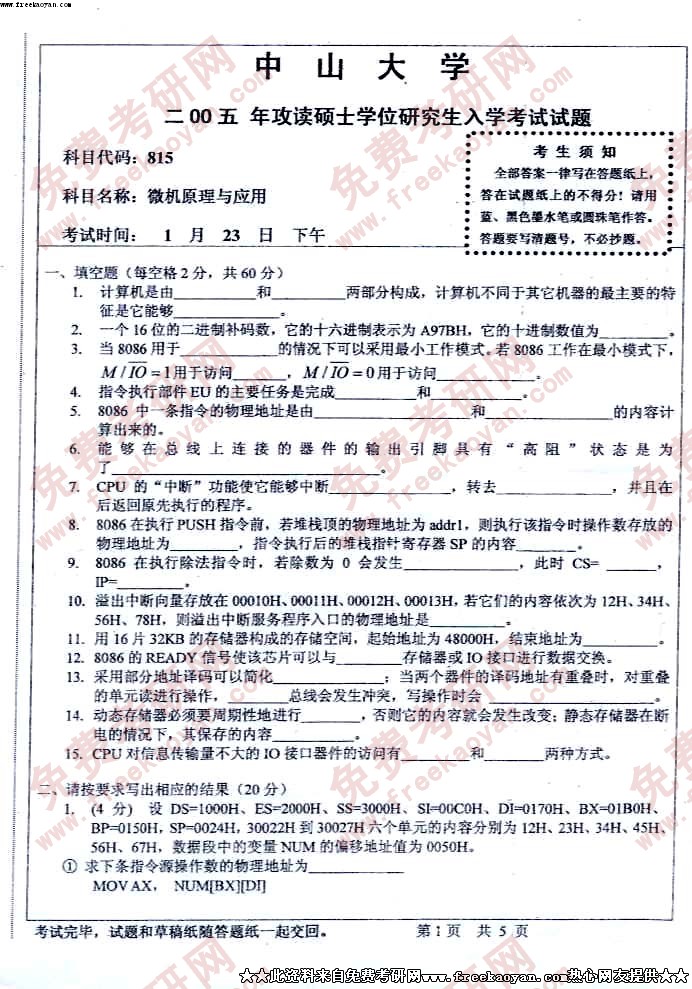 中山大学2005年半岛在线注册真题-微机原理与应用
