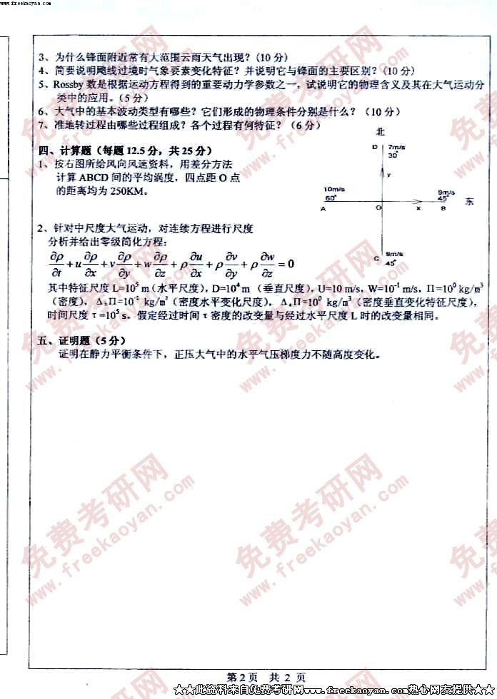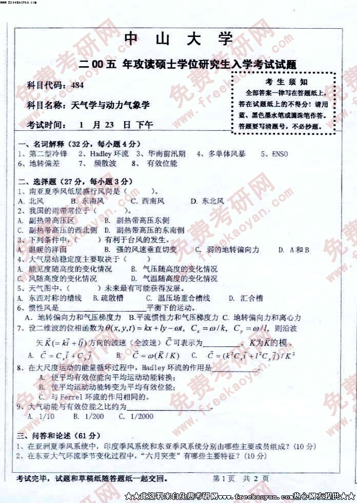 中山大学2005年半岛在线注册真题-天气学与动力气象学