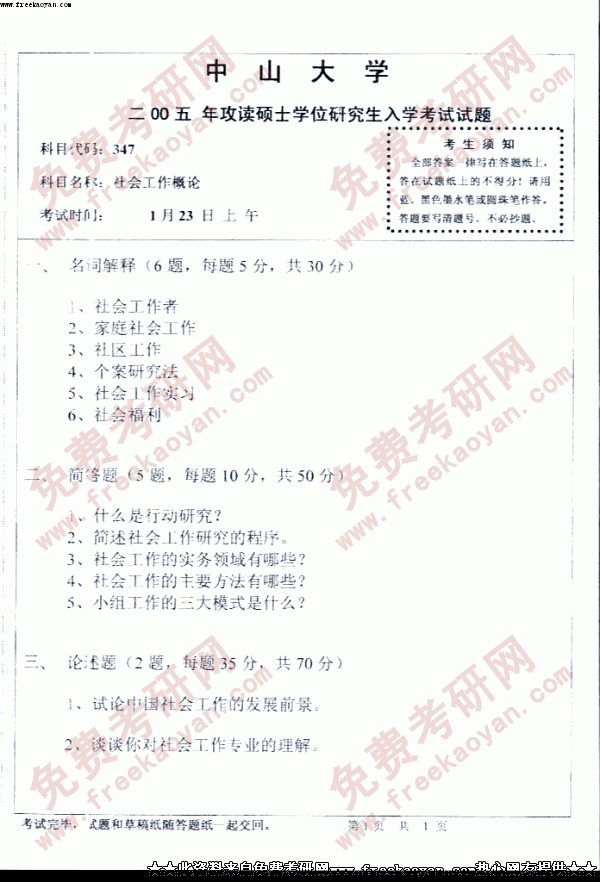 专业课半岛在线注册经验 本站小编 FreeKaoyan 2018-01-22中山大学2005年半岛在线注册真题-社会工作实务