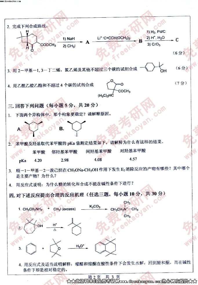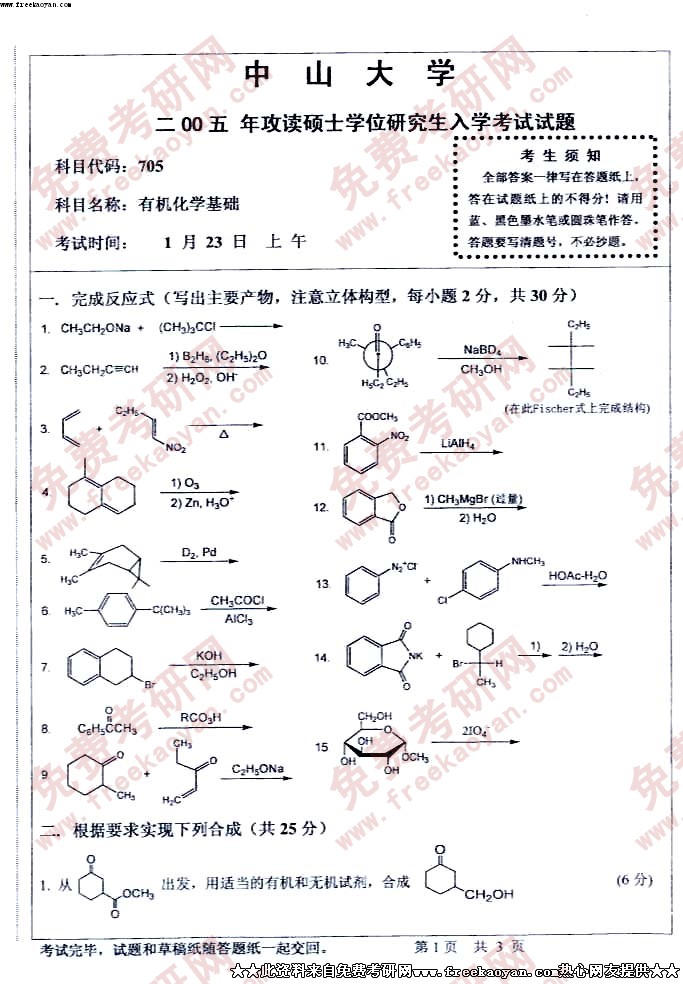 中山大学2005年半岛在线注册真题-有机化学基础三