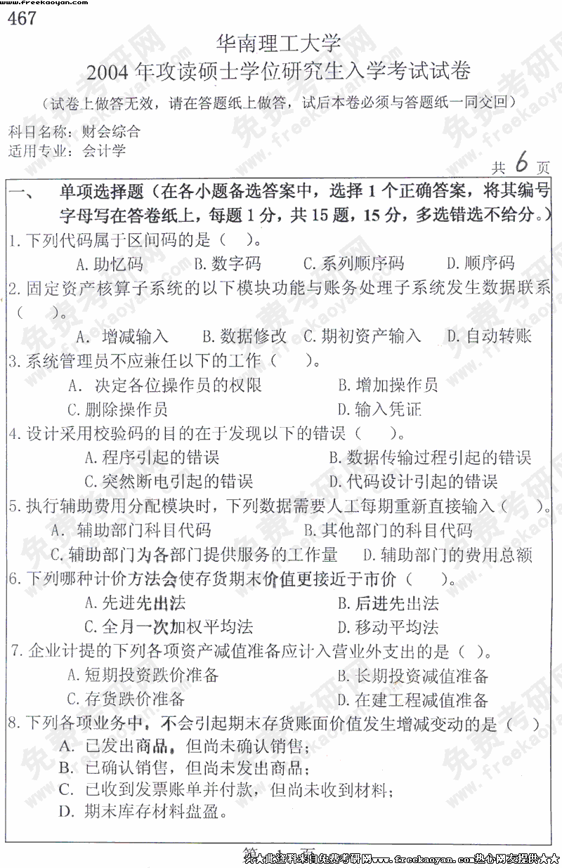 第8屏是空白的,所以没截,其他的试卷遇到这种情况也是一样的 ...