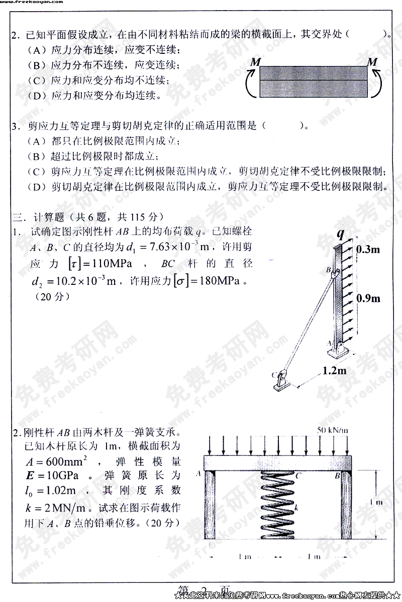 华南理工大学2004年半岛在线注册真题-船舶静力学(含材料力学)