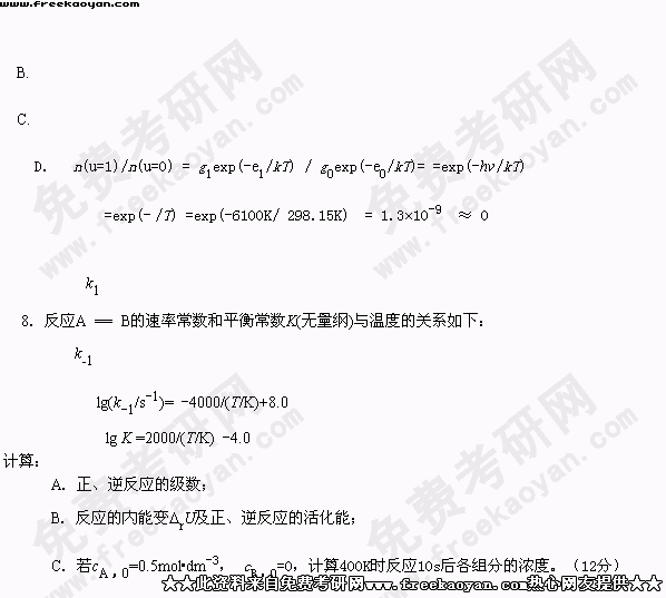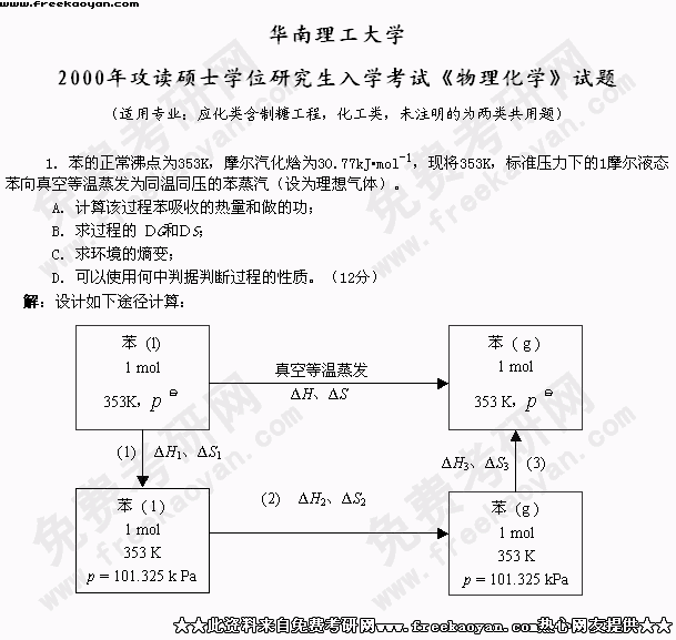 华南理工大学2000年半岛在线注册真题-物理化学有部分答案