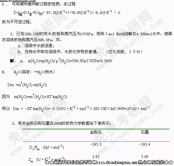华南理工大学2001年半岛在线注册真题-物理化学(含物理化学实验)有答案