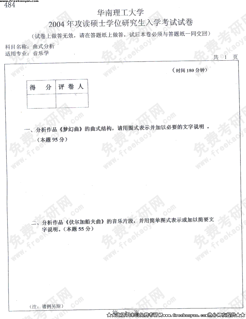 华南理工大学2004年半岛在线注册真题-曲式分析