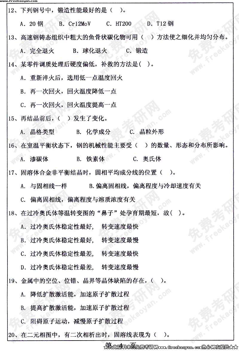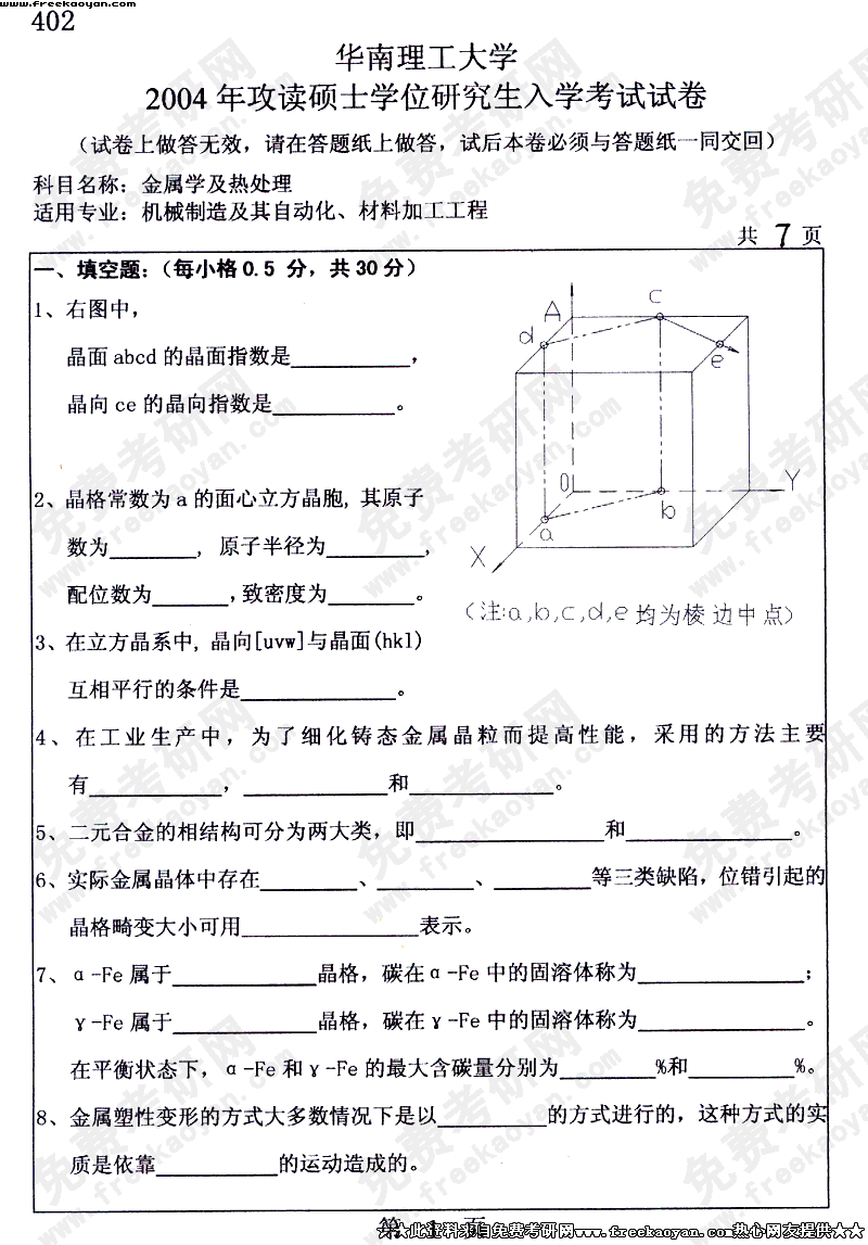 华南理工大学2004年半岛在线注册真题-金属学及热处理