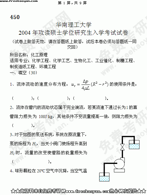 华南理工大学2004年半岛在线注册真题-化学化工基础