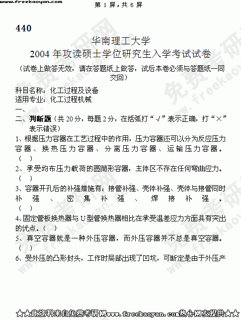 华南理工大学2004年半岛在线注册真题-化工过程及设备