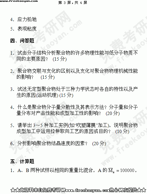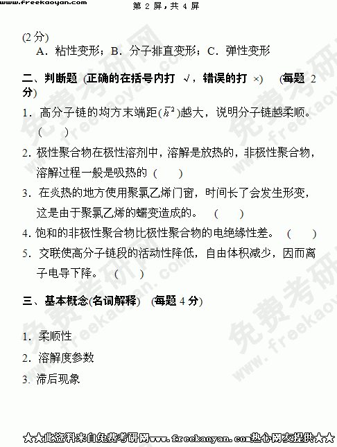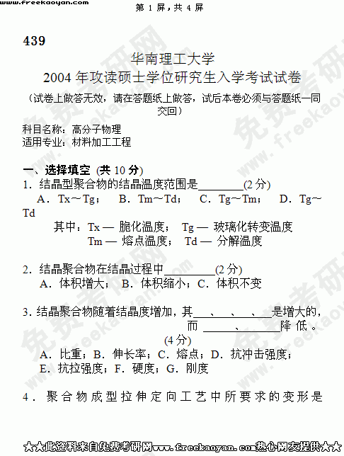 华南理工大学2004年半岛在线注册真题-高分子物理