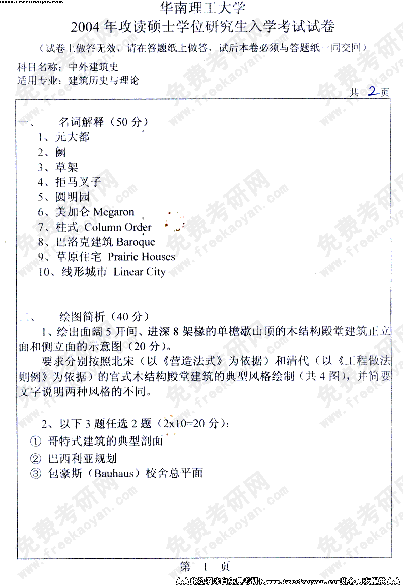 华南理工大学2004年半岛在线注册真题-中外建筑史