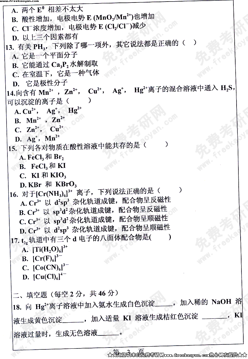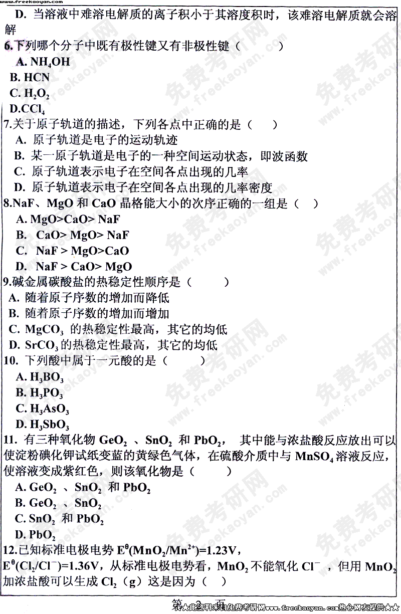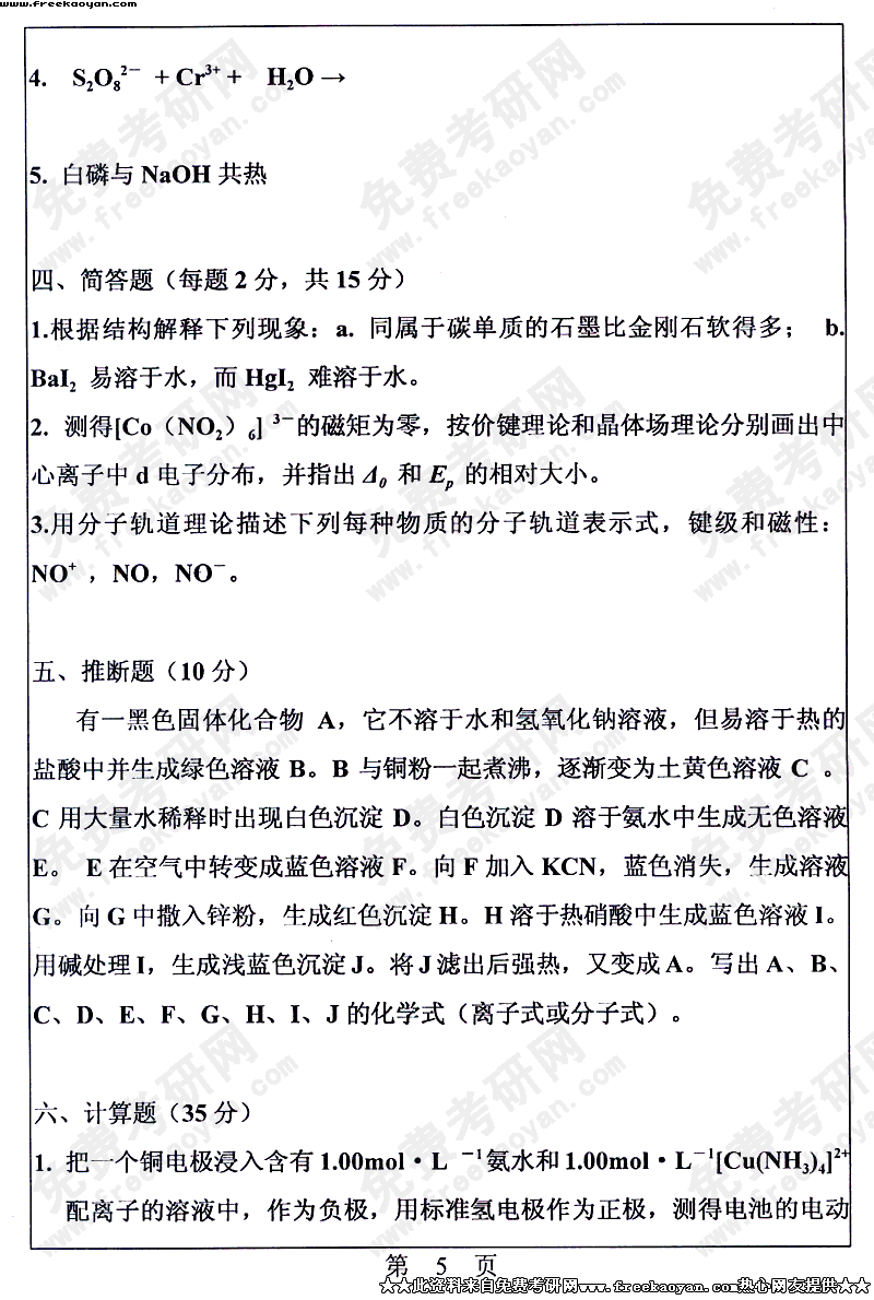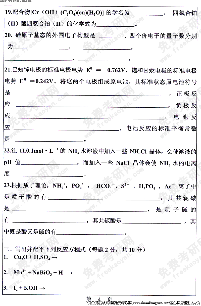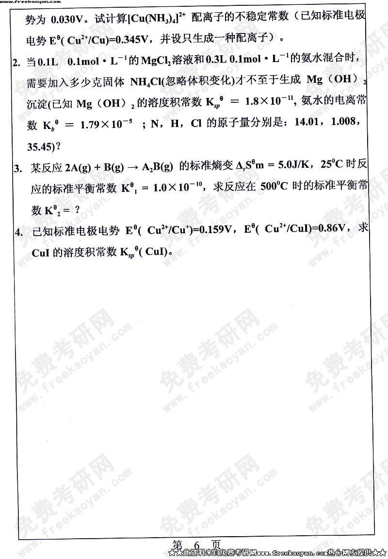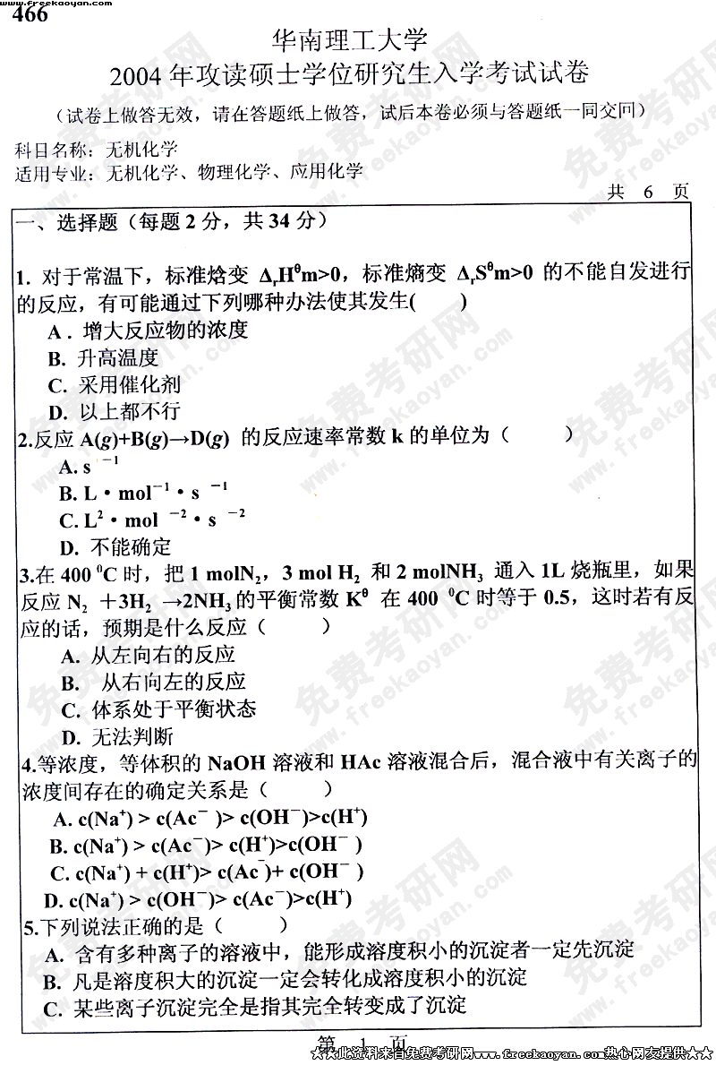 华南理工大学2004年半岛在线注册真题-物理化学(化)