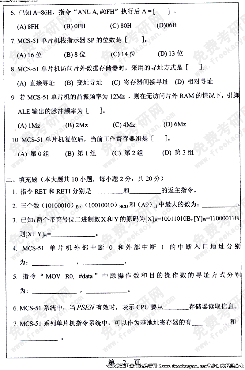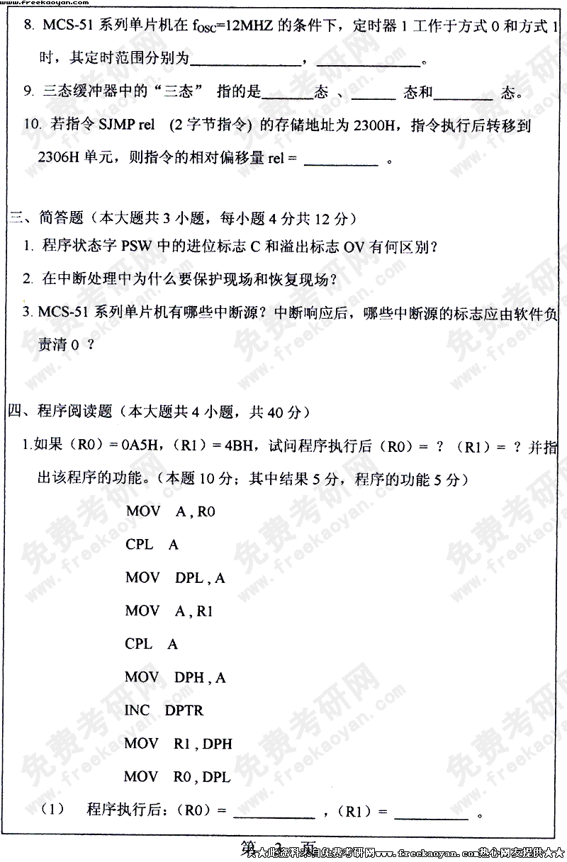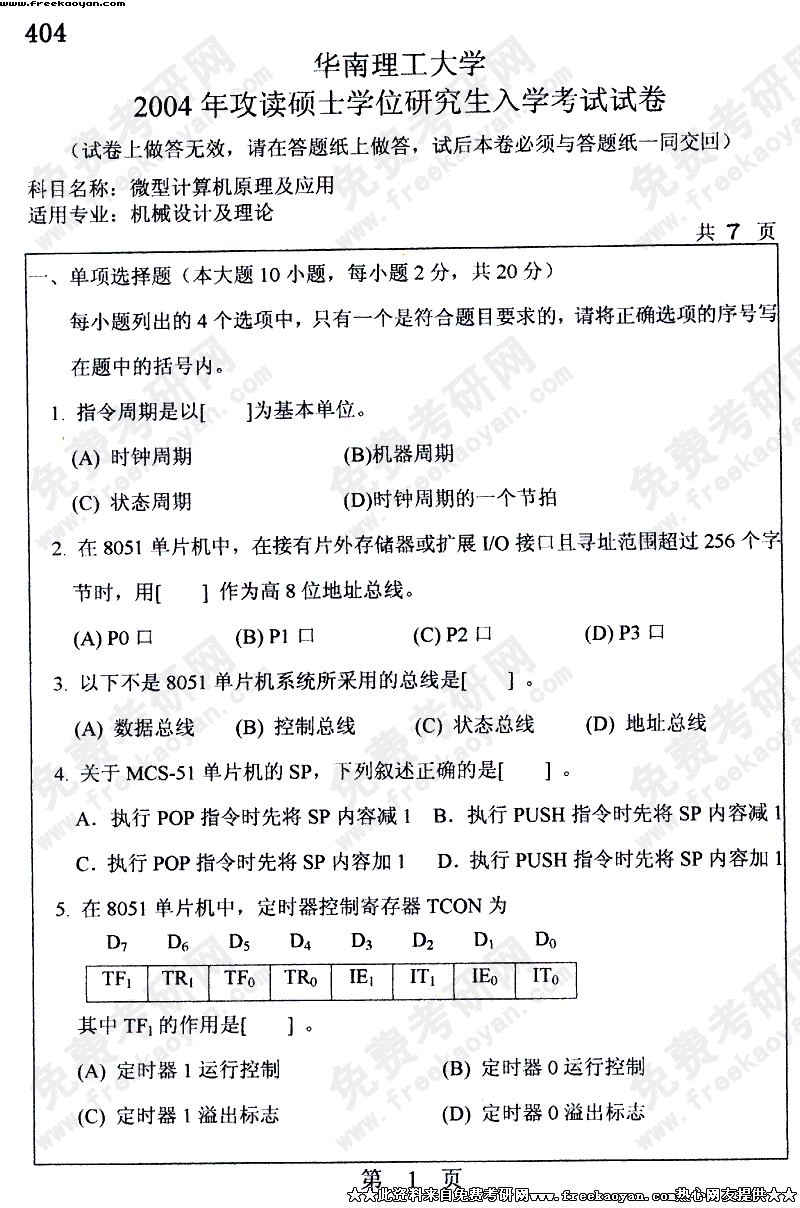 华南理工大学2004年半岛在线注册真题-微型计算机原理及应用