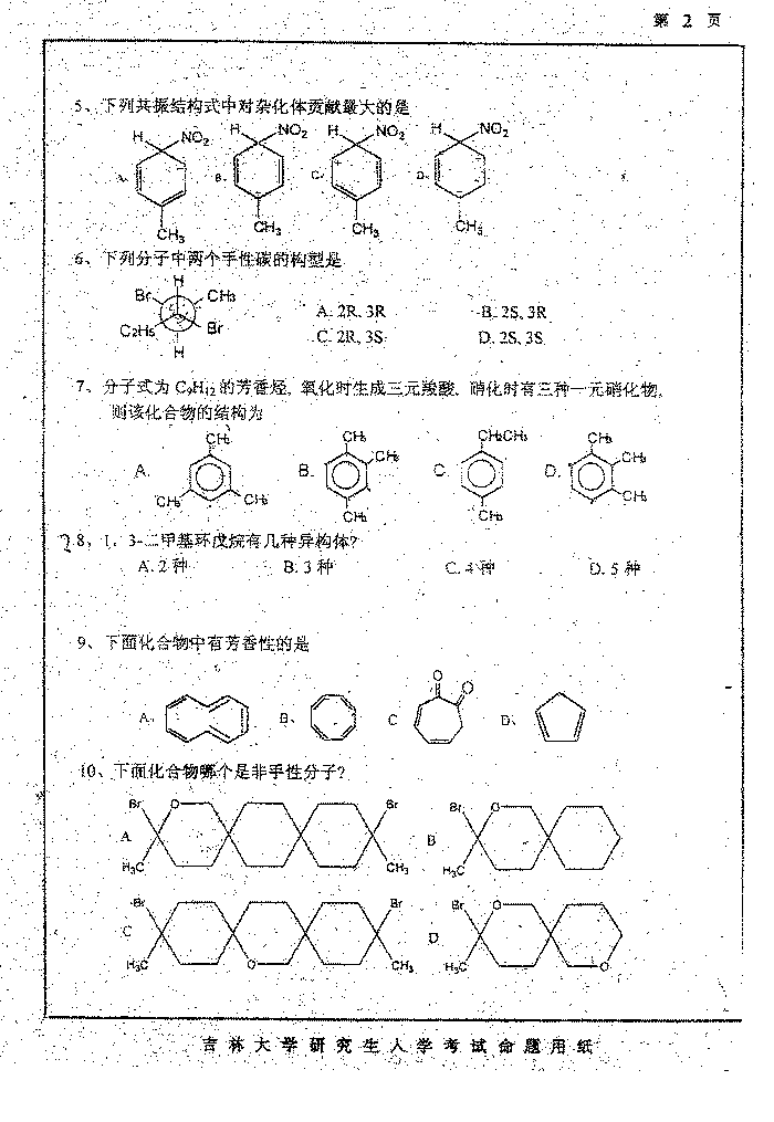 吉林大学2002年半岛在线注册真题-有机化学