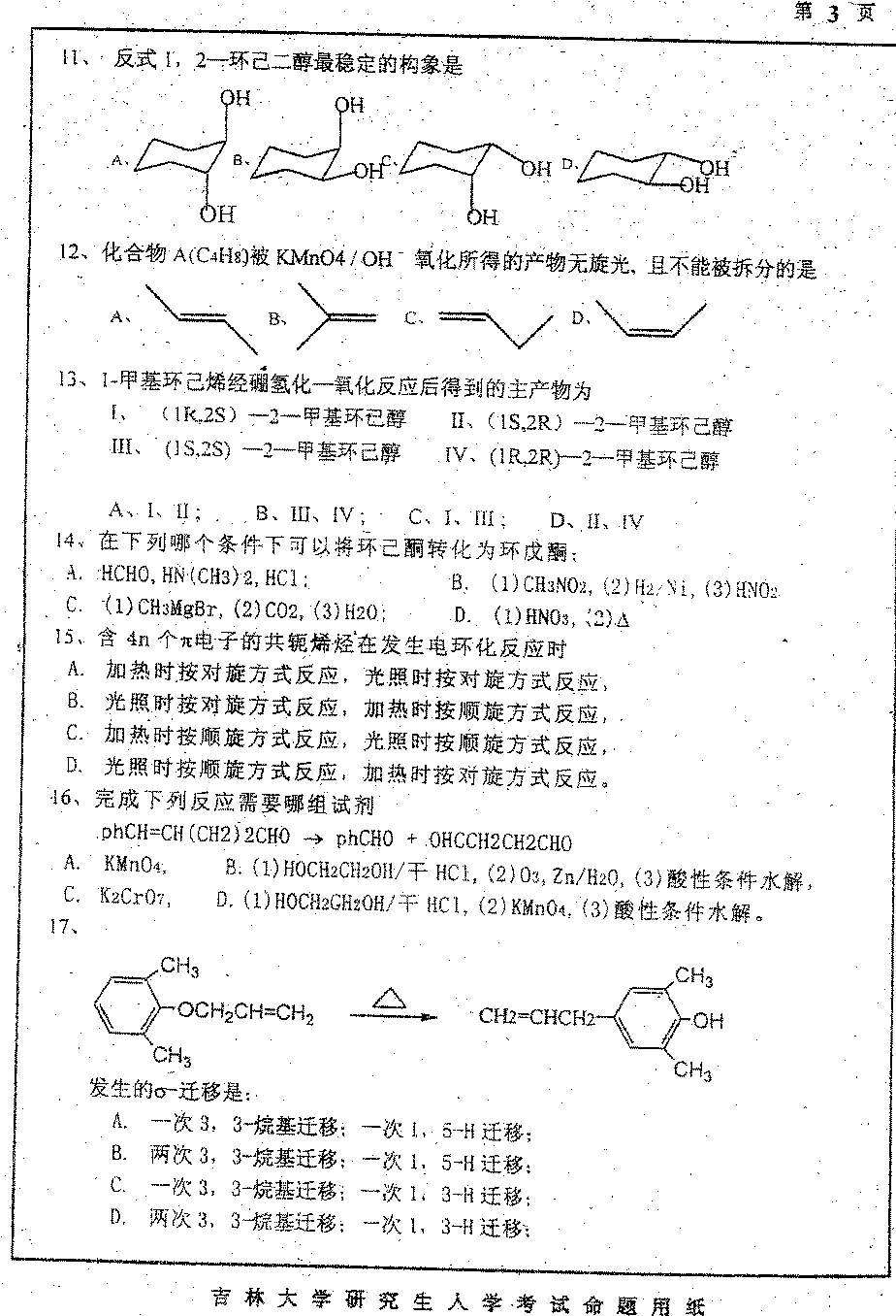 专业课半岛在线注册经验 本站小编 FreeKaoyan 2018-01-22吉林大学2001年半岛在线注册真题-有机化学