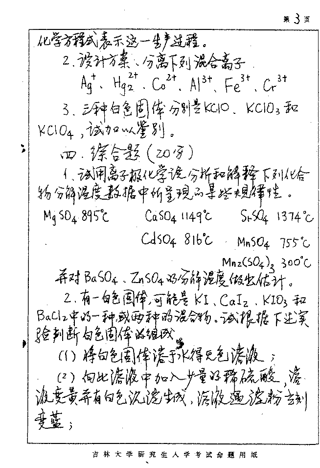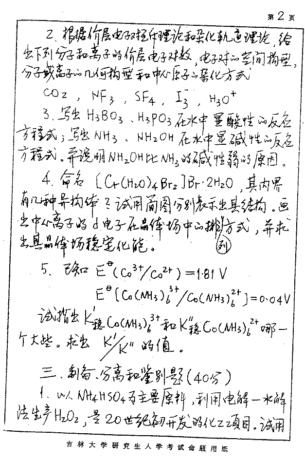 吉林大学2003年半岛在线注册真题-无机化学
