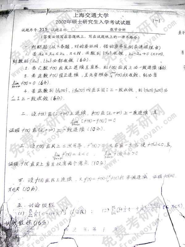 专业课半岛在线注册经验 本站小编 FreeKaoyan 2018-01-22上海交通大学2001年半岛在线注册真题-数学分析