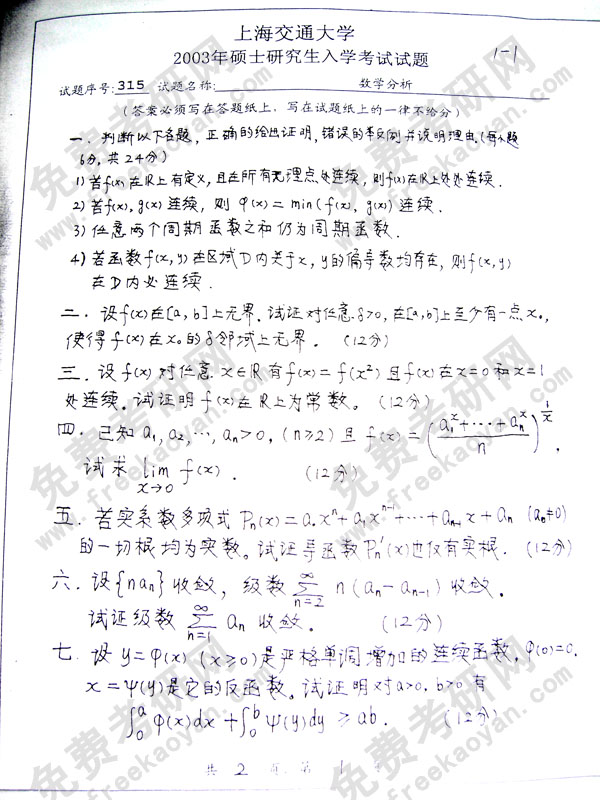 专业课半岛在线注册经验 本站小编 FreeKaoyan 2018-01-22上海交通大学2001年半岛在线注册真题-数学分析