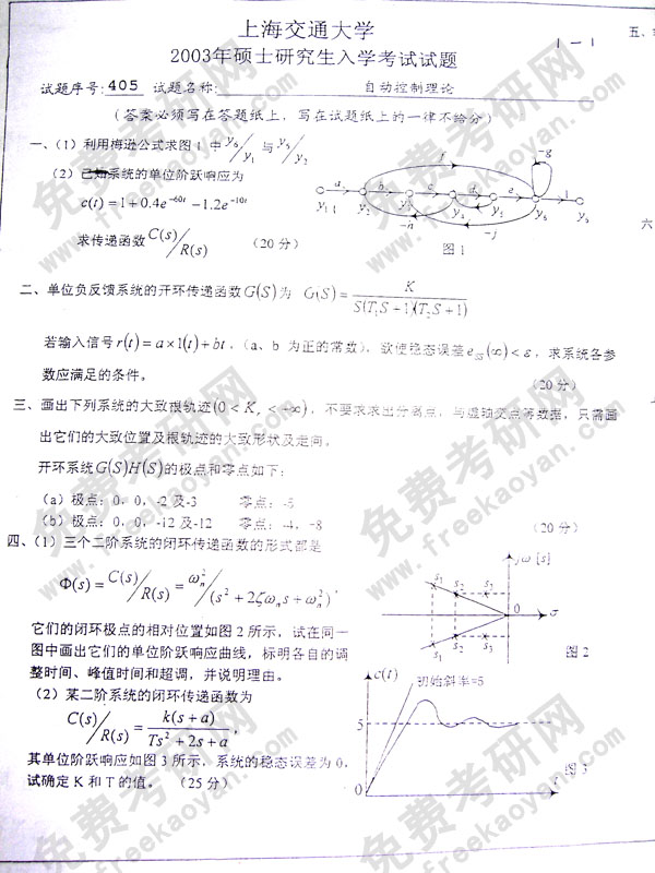 上海交通大学2003年半岛在线注册真题-自动控制理论