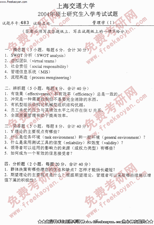 上海交通大学2004年半岛在线注册真题-管理学