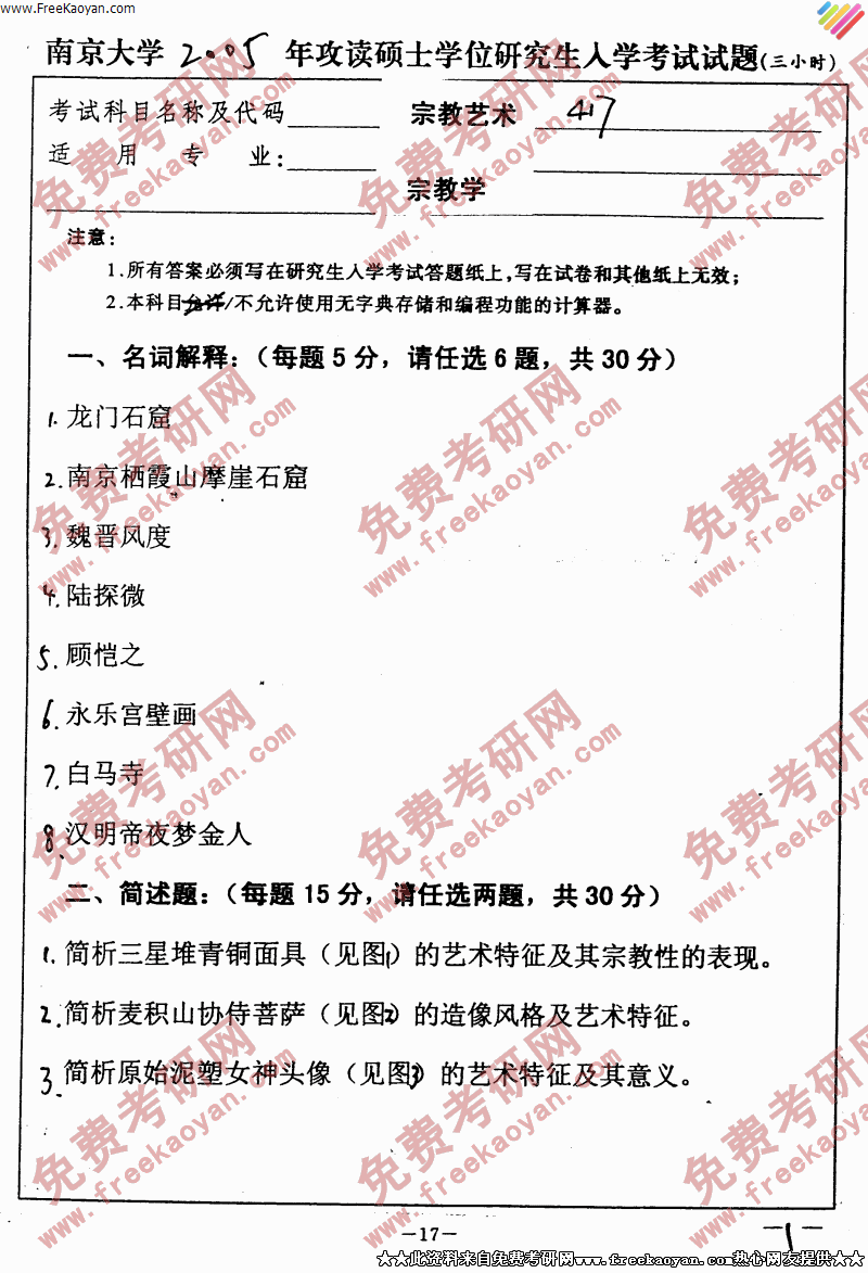 专业课半岛在线注册经验 本站小编 FreeKaoyan 2018-01-22南京大学2005年半岛在线注册真题-中外美术史