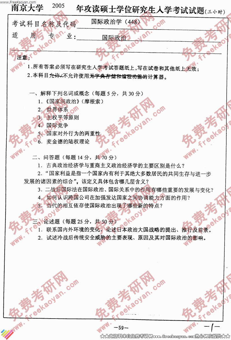 专业课半岛在线注册经验 本站小编 FreeKaoyan 2018-01-22南京大学2005年半岛在线注册真题-国际关系