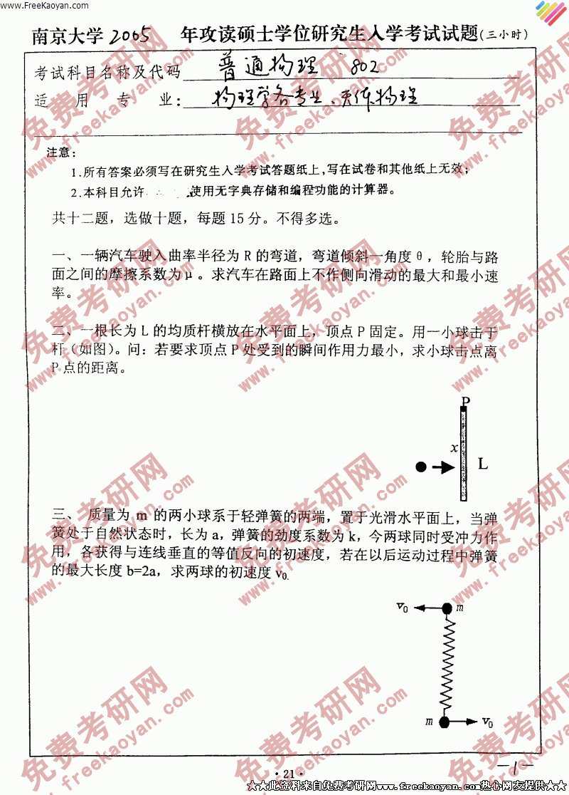南京大学2005年半岛在线注册真题-普通物理