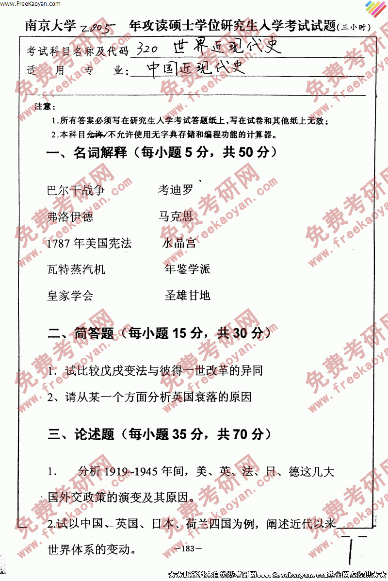 相关话题/半岛在线注册真题 南京大学 近现代史 世界