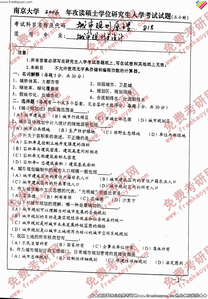 相关话题/南京大学 半岛在线注册真题 城市规划原理