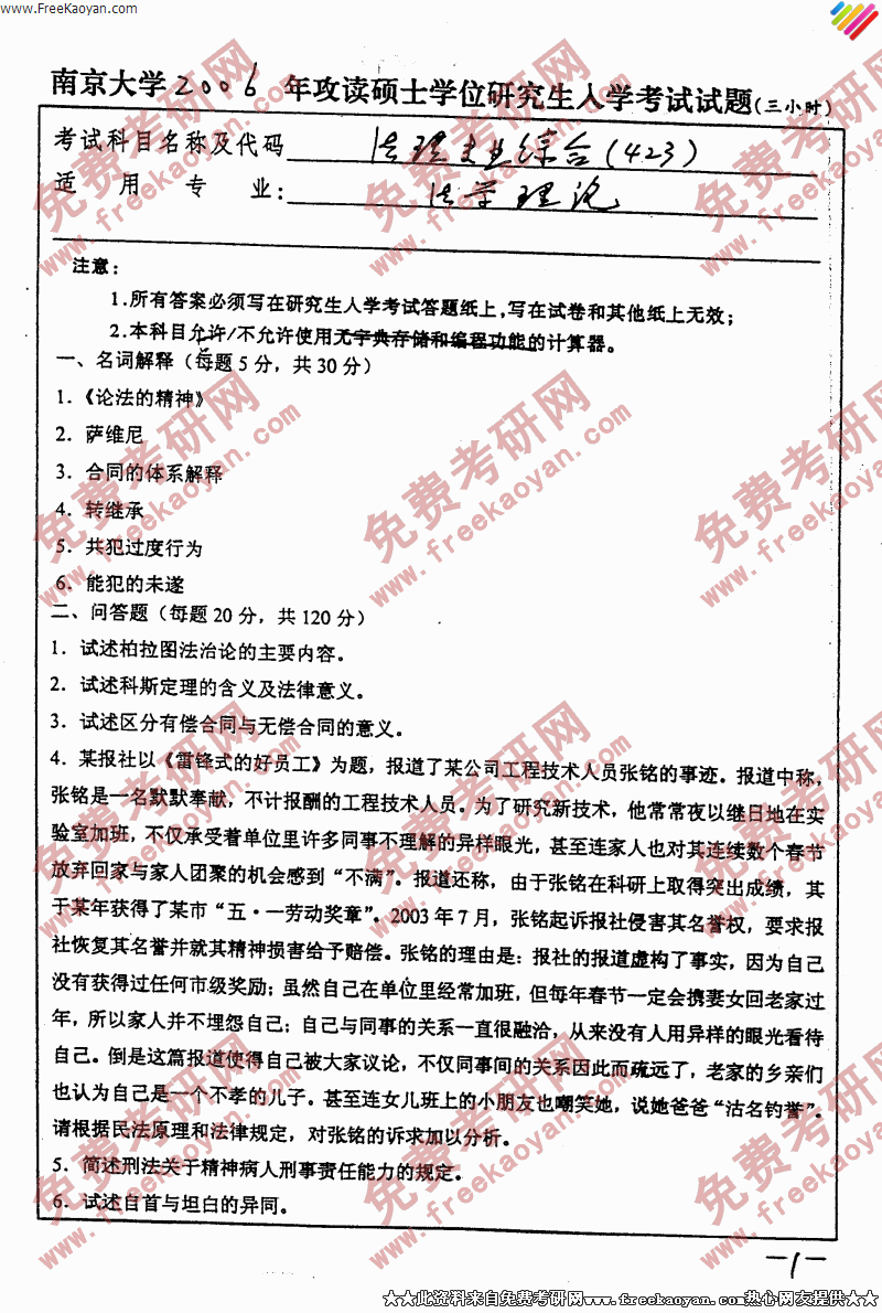 相关话题/半岛在线注册真题 南京大学 专业综合 法理