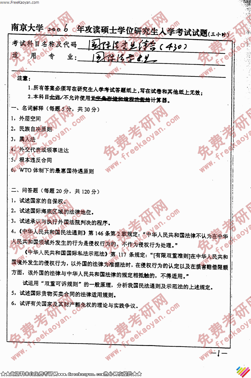 南京大学2006年半岛在线注册真题-国际法专业综合