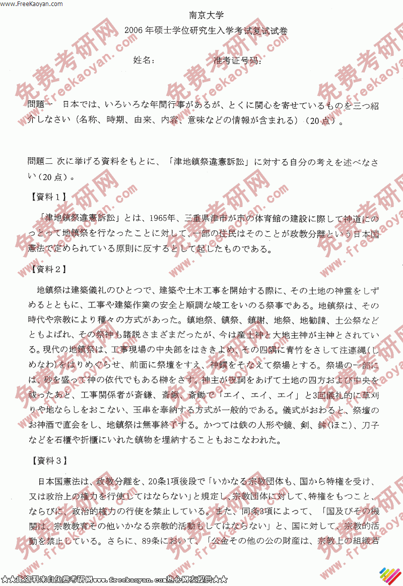 专业课半岛在线注册经验 本站小编 FreeKaoyan 2018-01-22南京大学2006年半岛在线注册真题-日语