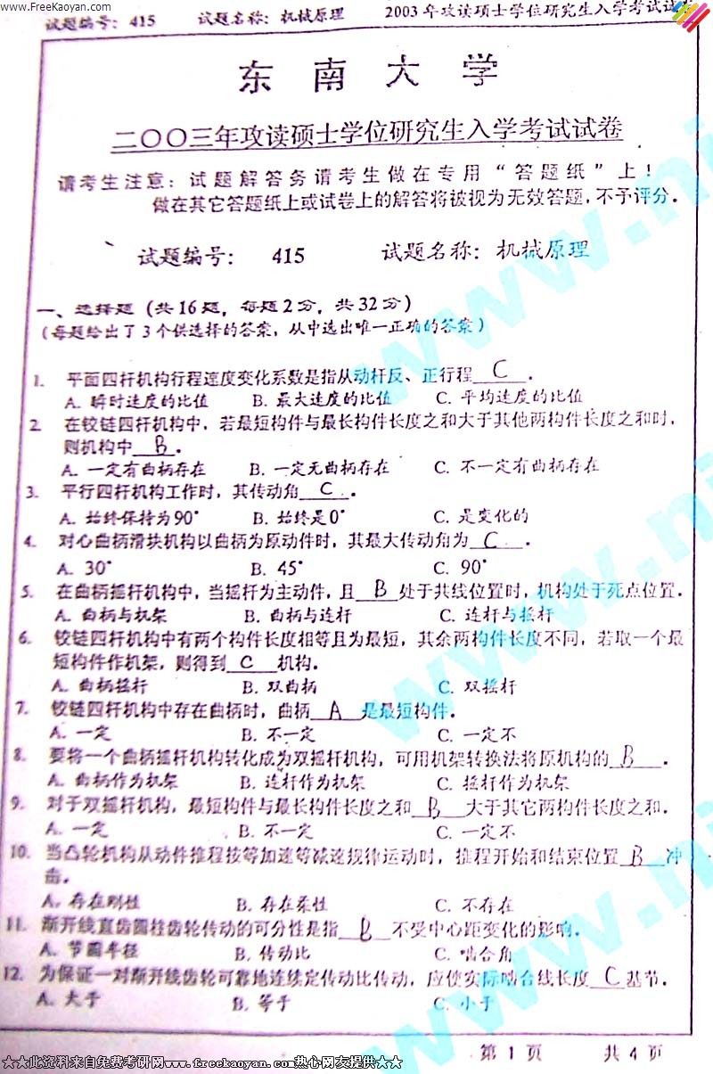 东南大学2003年半岛在线注册真题-机械原理(415)