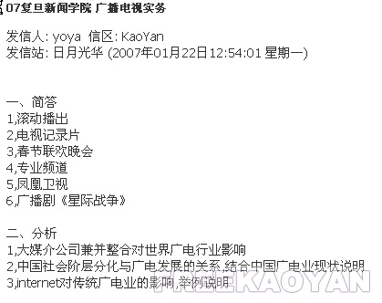 专业课半岛在线注册经验 本站小编 FreeKaoyan 2018-01-22复旦大学2007年半岛在线注册真题-传播实务