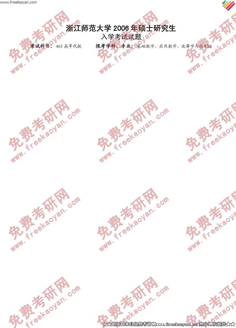 浙江师范大学2006年半岛在线注册真题-高等代数