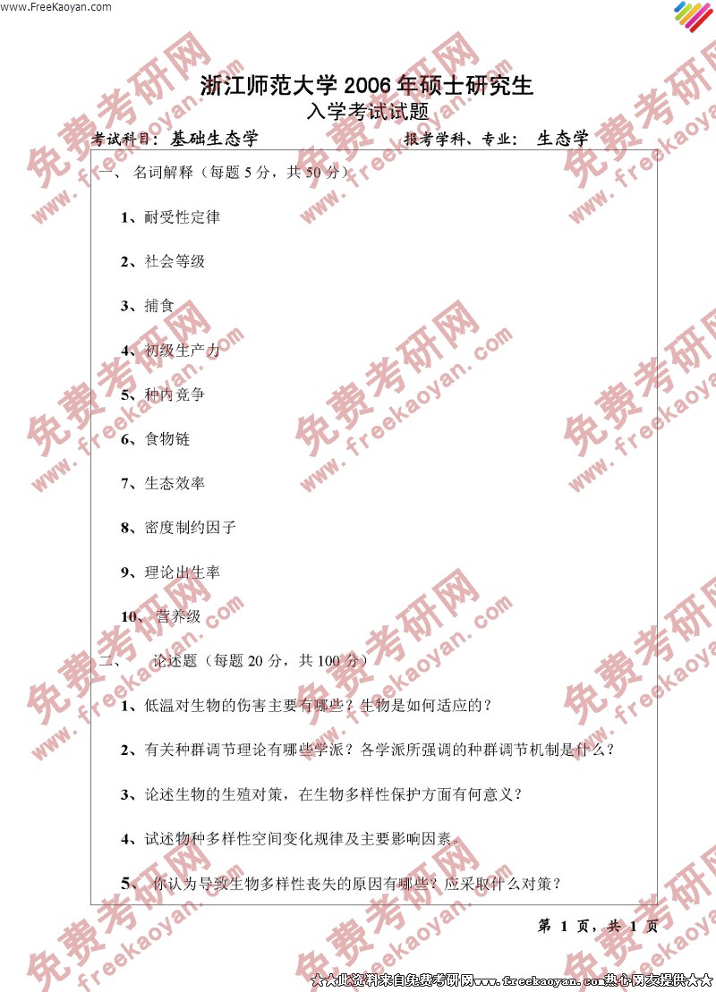 相关话题/半岛在线注册真题 浙江师范大学 生态学 基础