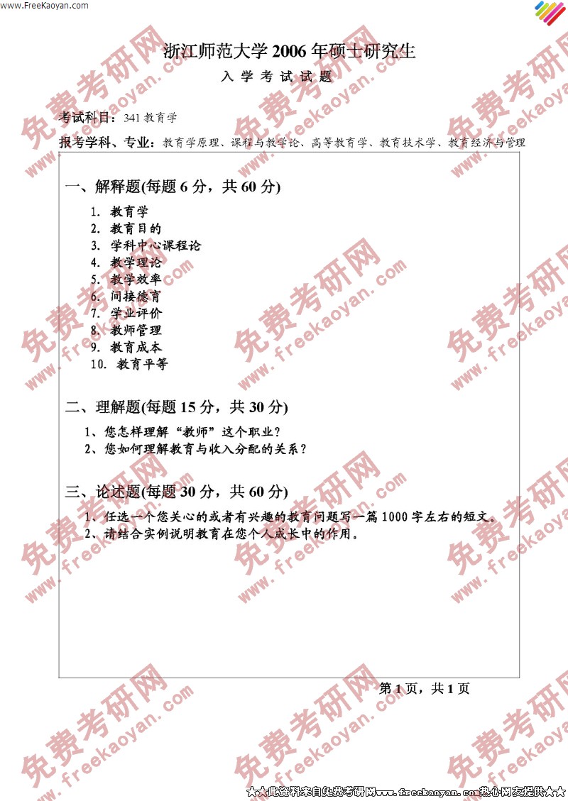 专业课半岛在线注册经验 本站小编 FreeKaoyan 2018-01-22浙江师范大学2006年半岛在线注册真题-教育管理学