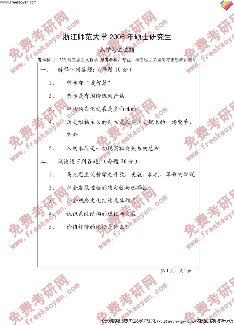 浙江师范大学2006年半岛在线注册真题-马克思主义哲学
