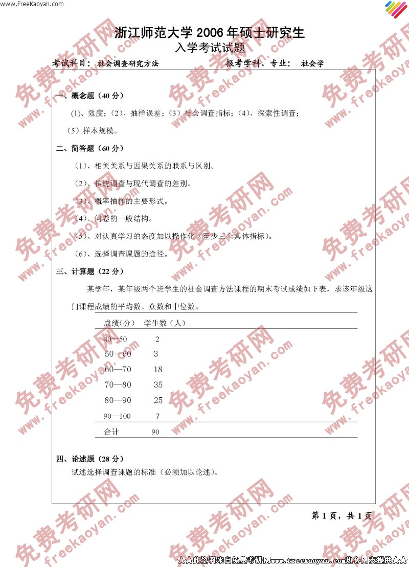 浙江师范大学2006年半岛在线注册真题-社会调查研究方法