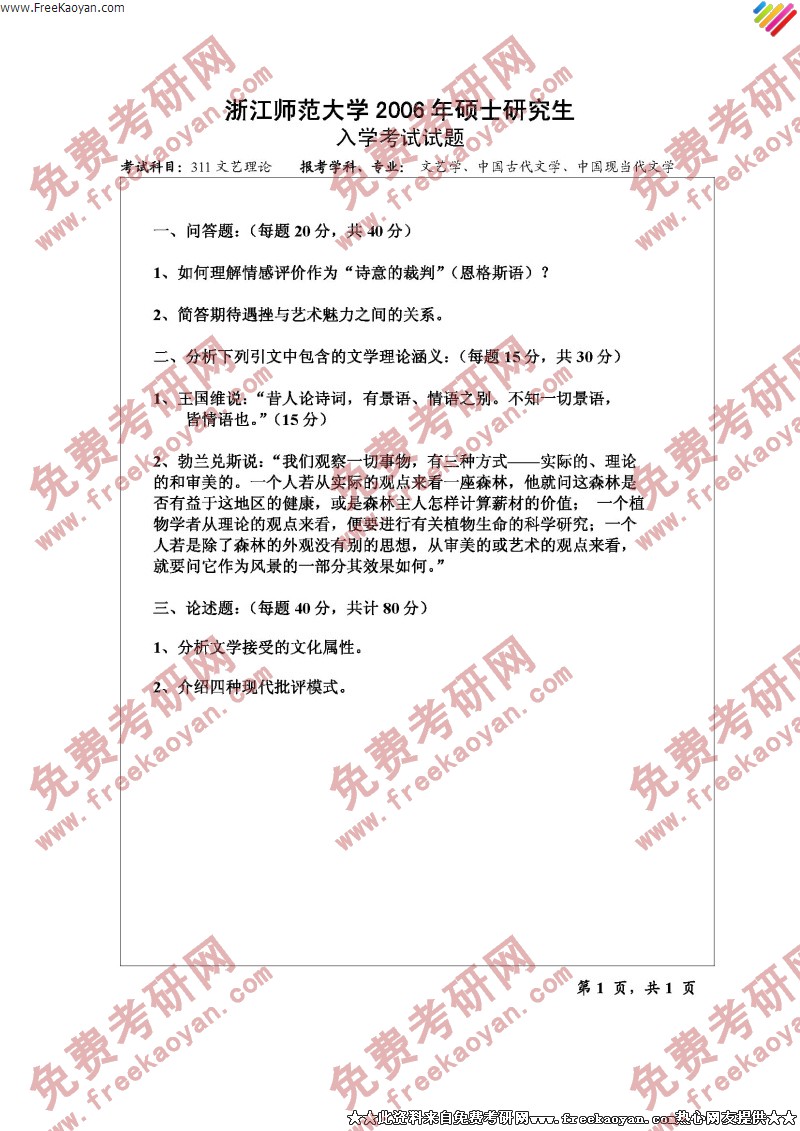 浙江师范大学2006年半岛在线注册真题-文学评论