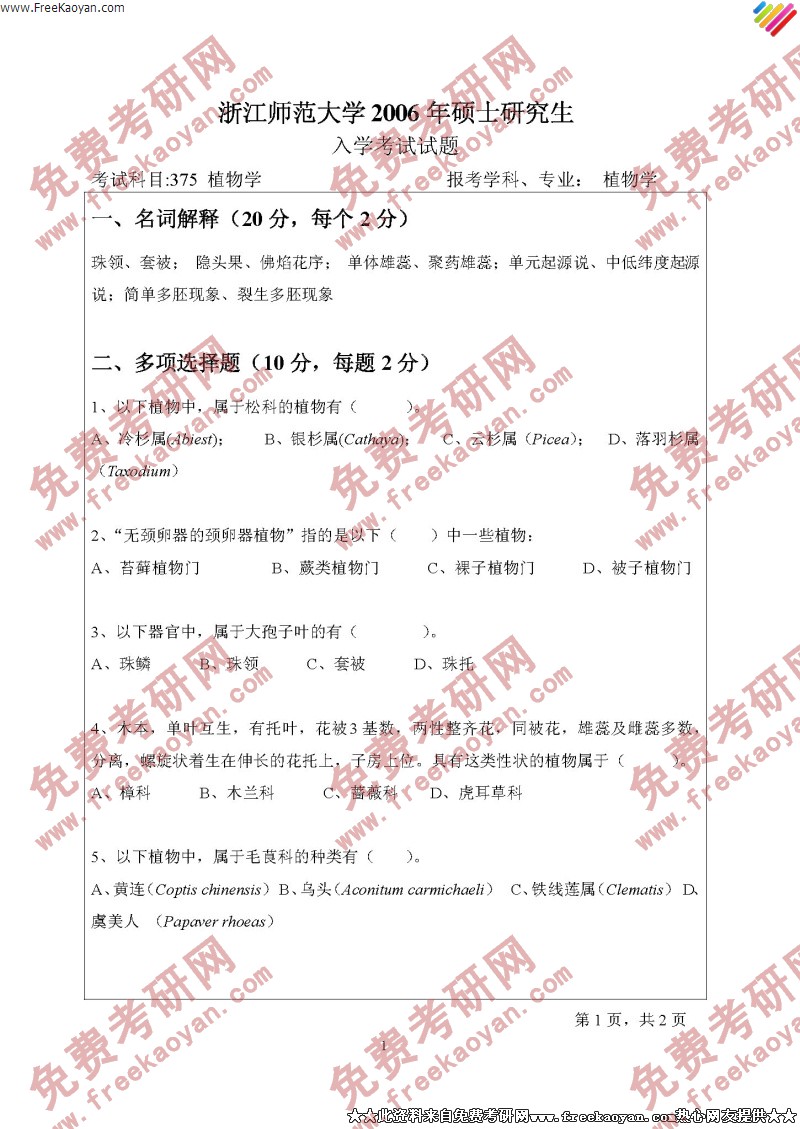 相关话题/浙江师范大学 半岛在线注册真题 植物学