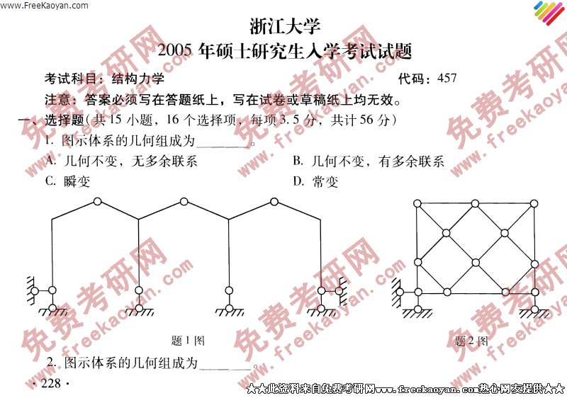 浙江大学2005年半岛在线注册真题-结构力学