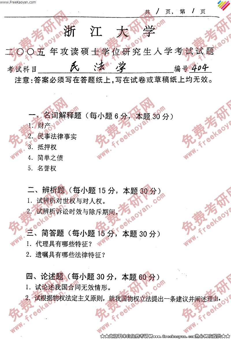 相关话题/浙江大学 半岛在线注册真题 民法学