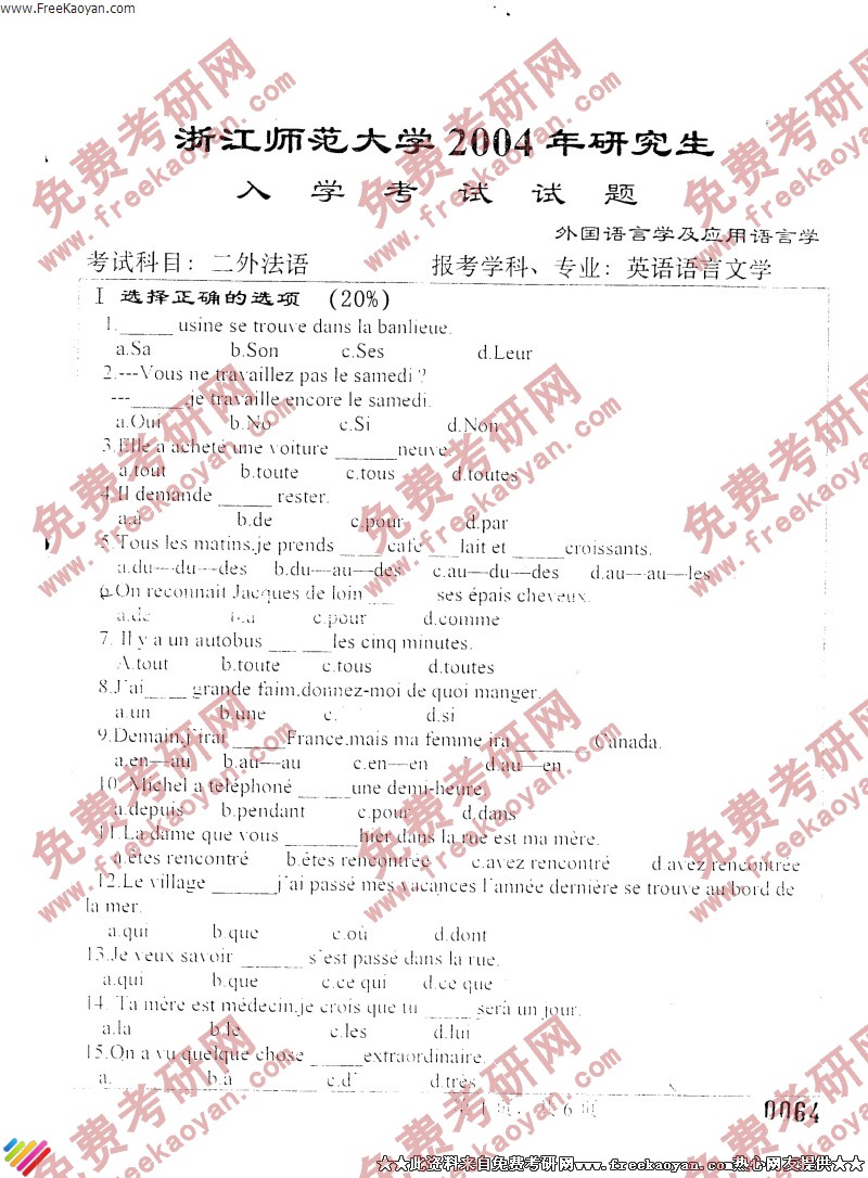 浙江师范大学2004年半岛在线注册真题-二外法语